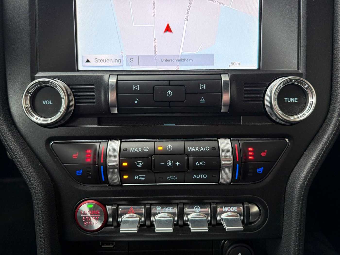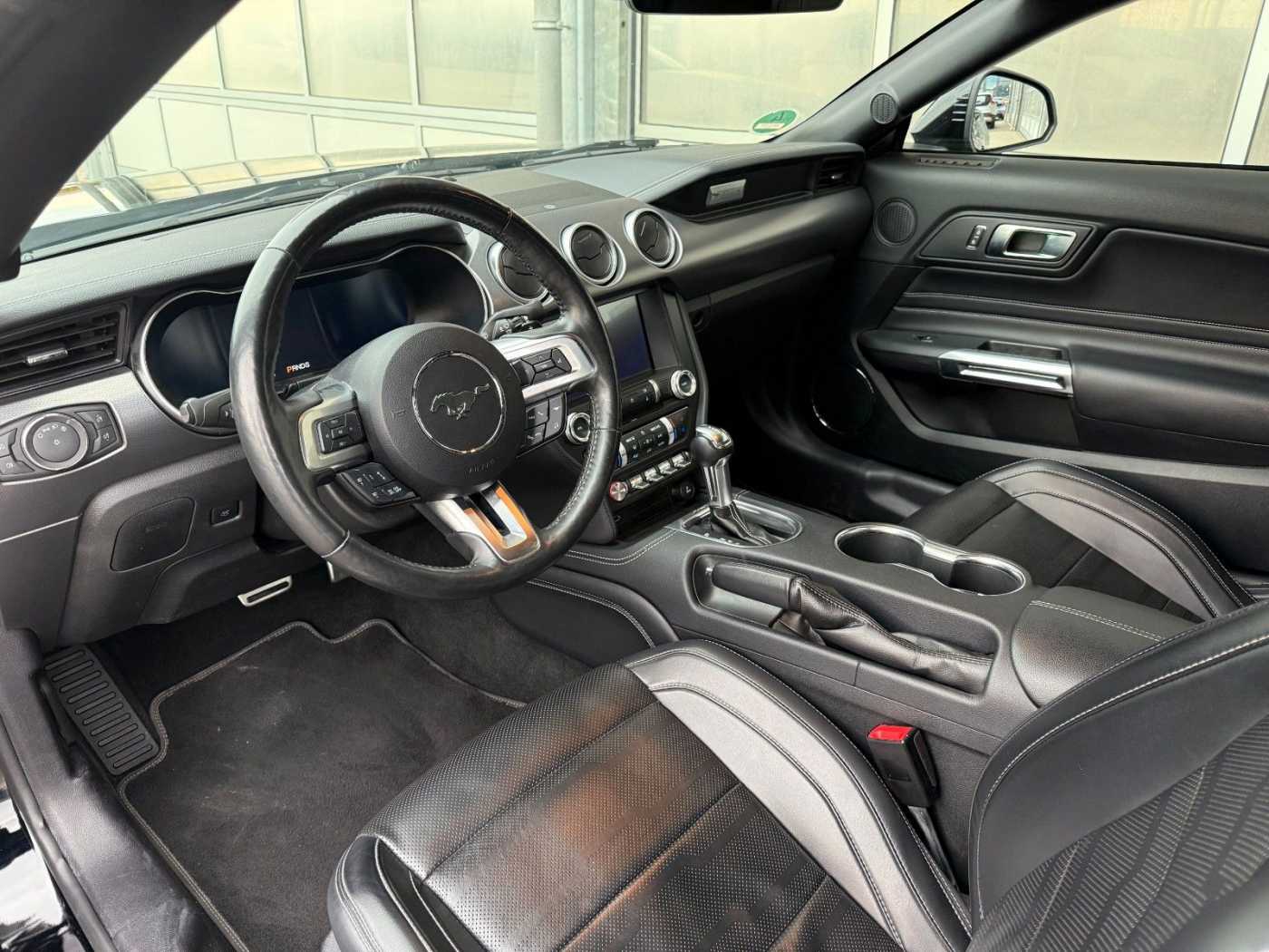 Airbag Fahrer-/Beifahrerseite, Auspuffanlage mit Klappensteuerung, Außenspiegel elektr. verstell- und heizbar, Blinkleuchte in Außenspiegel integriert, Bodenleuchte im Außenspiegel, Bordcomputer, Doppelendrohr Auspuffanlage, Elektr. Bremskraftverteilung (EBD), Elektron. Stabilitäts-Programm (AdvanceTrac), Fahrassistenz-System: Berganfahr-Assistent (Hill-Holder), Fahrassistenz-System: Notbrems-Assistent, Fahrassistenz-System: Spurhalteassistent, Faltverdeck elektrisch, Fensterheber elektrisch hinten, Getriebe Automatik - Typ: 10R80 (10-Stufen), Gurtstraffer, Handbremshebelgriff Leder, Karosserie: 2-türig, Klimaautomatik 2-Zonen, Knieairbag Fahrerseite, Lenkrad heizbar, Line-Lock-System, LM-Felgen, Modellpflege, Motor 5,0 Ltr. - 331 kW Ti-VCT V8 KAT, My Key (2. Fahrzeugschlüssel programmierbar), Nebelscheinwerfer LED, Parkpilotsystem hinten, Pedale Aluminium, Performance-Paket, Reifen-Reparaturkit, Reifendruck-Kontrollsystem, Rückfahrkamera, Schadstoffarm nach Abgasnorm Euro 6, Schadstoffarm nach Abgasnorm Euro 6d-TEMP, Scheinwerfer LED, Sperrdifferential, Stoßfänger hinten Sport-Design mit Diffusor, Stoßfänger Wagenfarbe